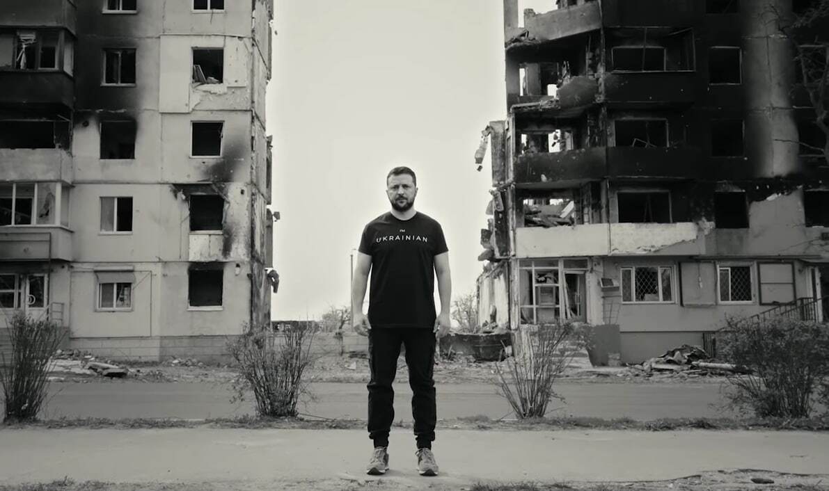 Տեսաուղերձը նկարահանվել է Կիևի մոտ գտնվող Բորոդյանկա բնակավայրում՝ փլուզված շենքի ֆոնին։