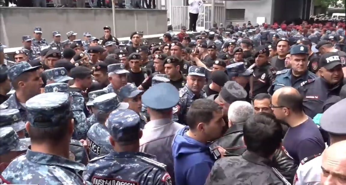 Մինչ պատգամավորները ԱԳՆ շենքում էին, բակում իրավիճակը լարվեց ոստիկանների և ցուցարարների միջև. նրանք սկսեցին հրել միմյանց: Պատգամավորները ԱԳՆ շենքից դուրս եկան իրավիճակը հանդարտեցնելու համար: