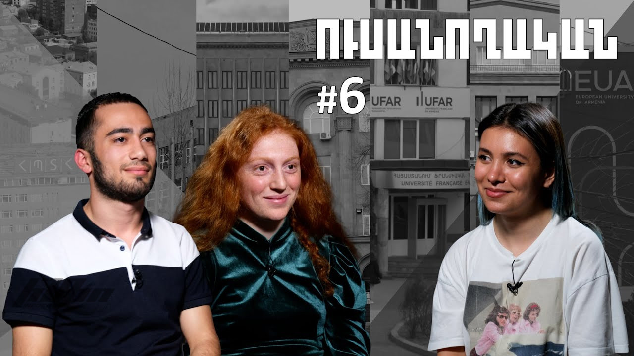 Ուսանողական 6-ում Լյուսի Մանվելյանը զրուցում է ՀՊՄՀ ռեժիսուրայի բաժնի ուսանող Դավիթ Ավանեսյանի և ԵԹԿՊԻ կինոռեժիսուրայի բաժնի ուսանող Մարինա Սոլոյանի հետ։