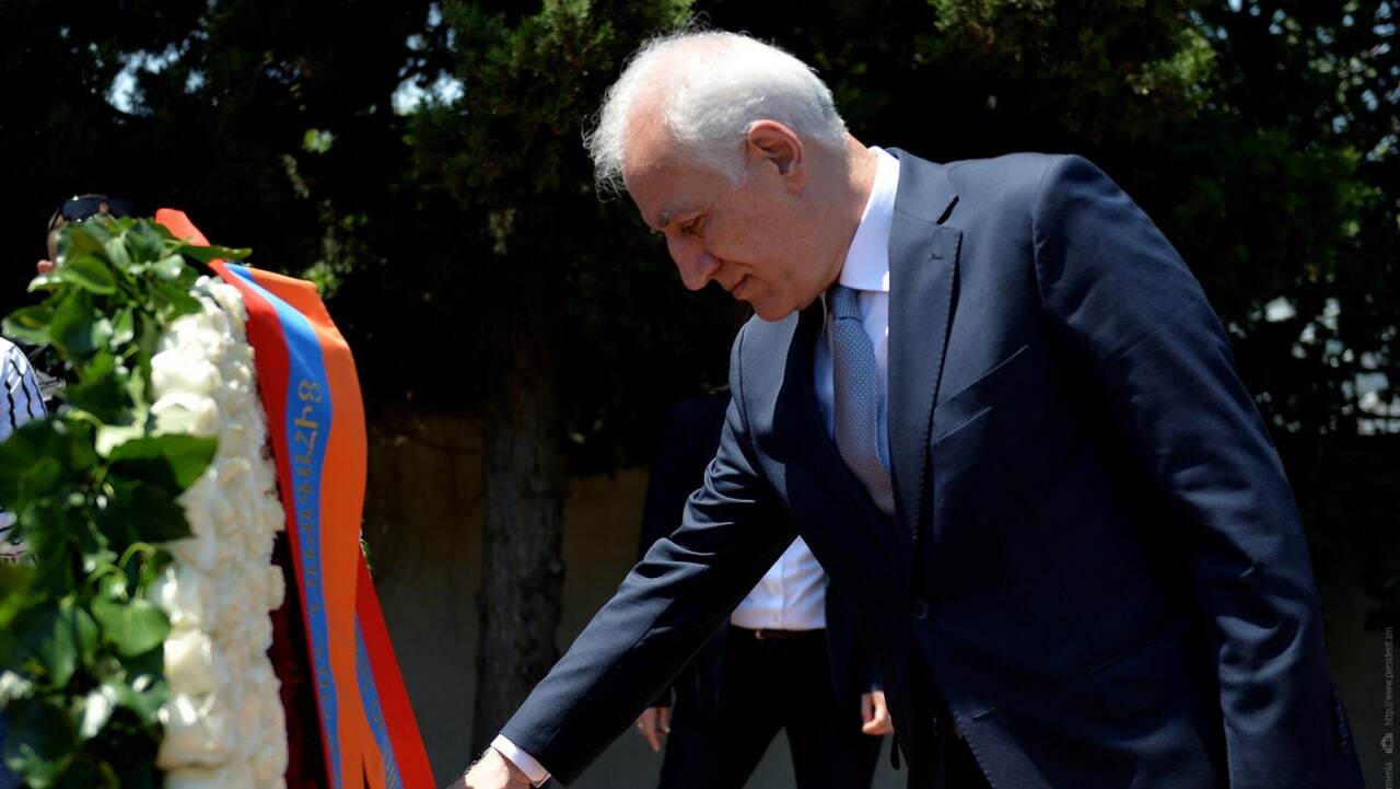 Նախագահը մշակութային և հասարակական գործիչ Լևոն Չիդիլյանի ուղեկցությամբ շրջել է պանթեոնի տարածքով և ծաղիկներ դրել հայ անվանի գործիչների շիրմաքարերին։ Նախագահը նշել, է որ մեծապես տպավորված է պանթեոնի բարեկարգ վիճակով։ Նա շնորհակալություն է հայտնել այն կարևոր աշխատանքի համար, որ արվում է ի հիշատակ հայ մտավորականների ու ականավոր հայ գործիչների։