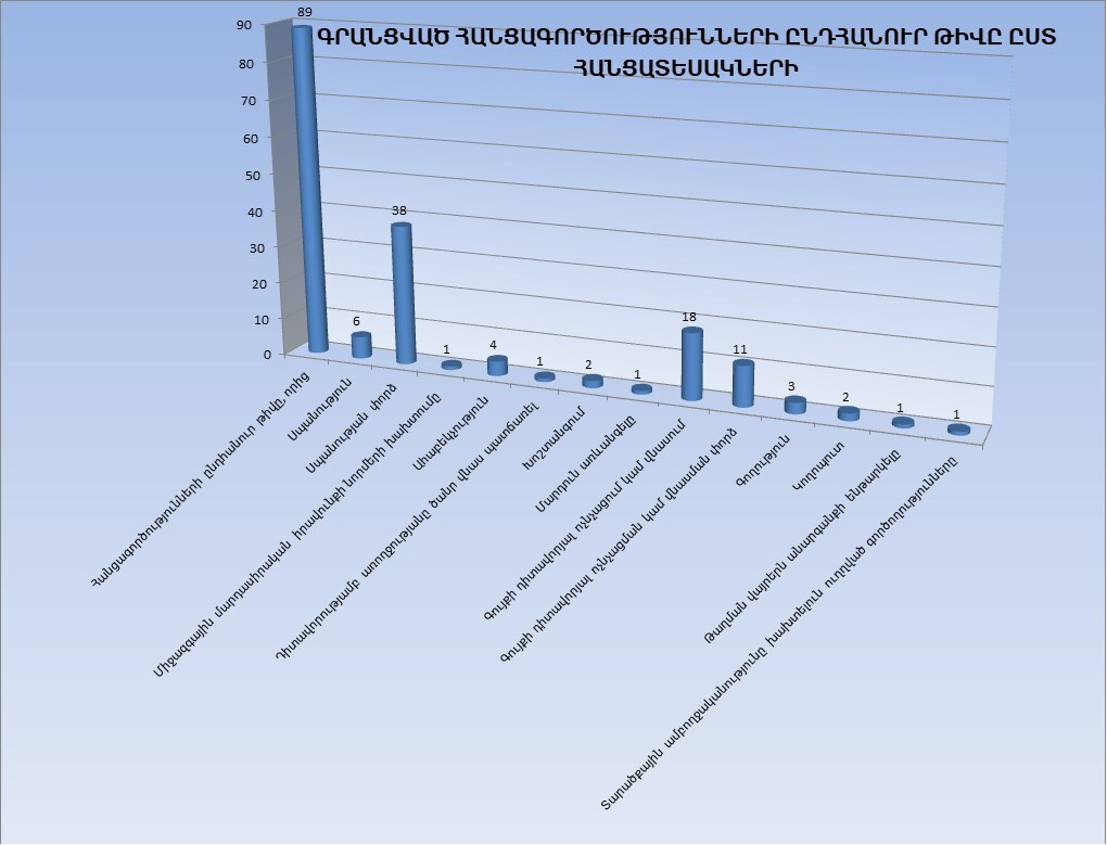 Արցախի Հանրապետության դատախազությունը հայտնում է, որ 2020թ. նոյեմբերի 9-ի եռակողմ հայտարարությունից մինչև 2022թ. հունիսի 1-ը Ադրբեջանի զինված ուժերի կողմից արցախցիների նկատմամբ կատարվել է ընդհանուր 89 հանցագործություն, որոնց կապակցությամբ հարուցվել է 72 քրեական վարույթ:
