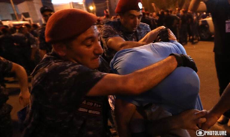 ժամը 20։30-ին հավաքի ղեկավարը՝ «Հայաստան» դաշինքի պատգամավոր Ի․ Սաղաթելյանը հայտարարեց, որ երթը շարունակվելու է Դեմիրճյան փողոցով, որը այդ պահին արգելափակված էր ոստիկանության բազմաշարք շղթայով։ Ոստիկանների մի մասը սպառազինված էին վահաններով, սաղավարտներով և մահակներով։ Հավաքի վայրում ծառայություն իրականացնող ոստիկաններից շատերը տեսանելի կերպով կամ առհասարակ չէին կրում տարբերանշաններ։ Հավաքի վայրում, ենթադրաբար, ներկա էին համազգեստ չկրող ոստիկաններ։