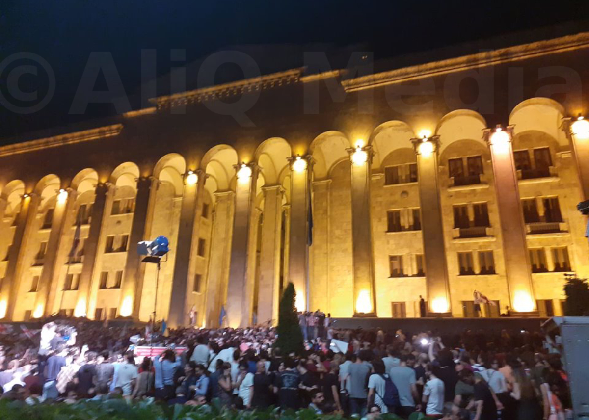 aliq.ge: Թբիլիսիում, Վրաստանի խորհրդարանի շենքի դիմաց իրավիճակը շարունակում է լարված մնալ: