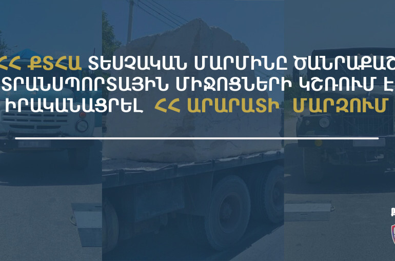 ՀՀ քաղաքաշինության, տեխնիկական և հրդեհային անվտանգության տեսչական մարմինը շարունակում է միջպետական, հանրապետական նշանակության ավտոճանապարհներով ծանրաքաշ և մեծ եզրաչափերով բեռնափոխադրումներ իրականացնող տրանսպորտային միջոցների նկատմամբ վերահսկողության իրականացումը։ Տեսչական մարմինը հուլիսի 11-ին և 12-ին ծանրաքաշ, մեծ եզրաչափերով բեռնափոխադրումներ իրականացնող տրանսպորտային միջոցների կշռում է իրականացրել Արարատի մարզում։