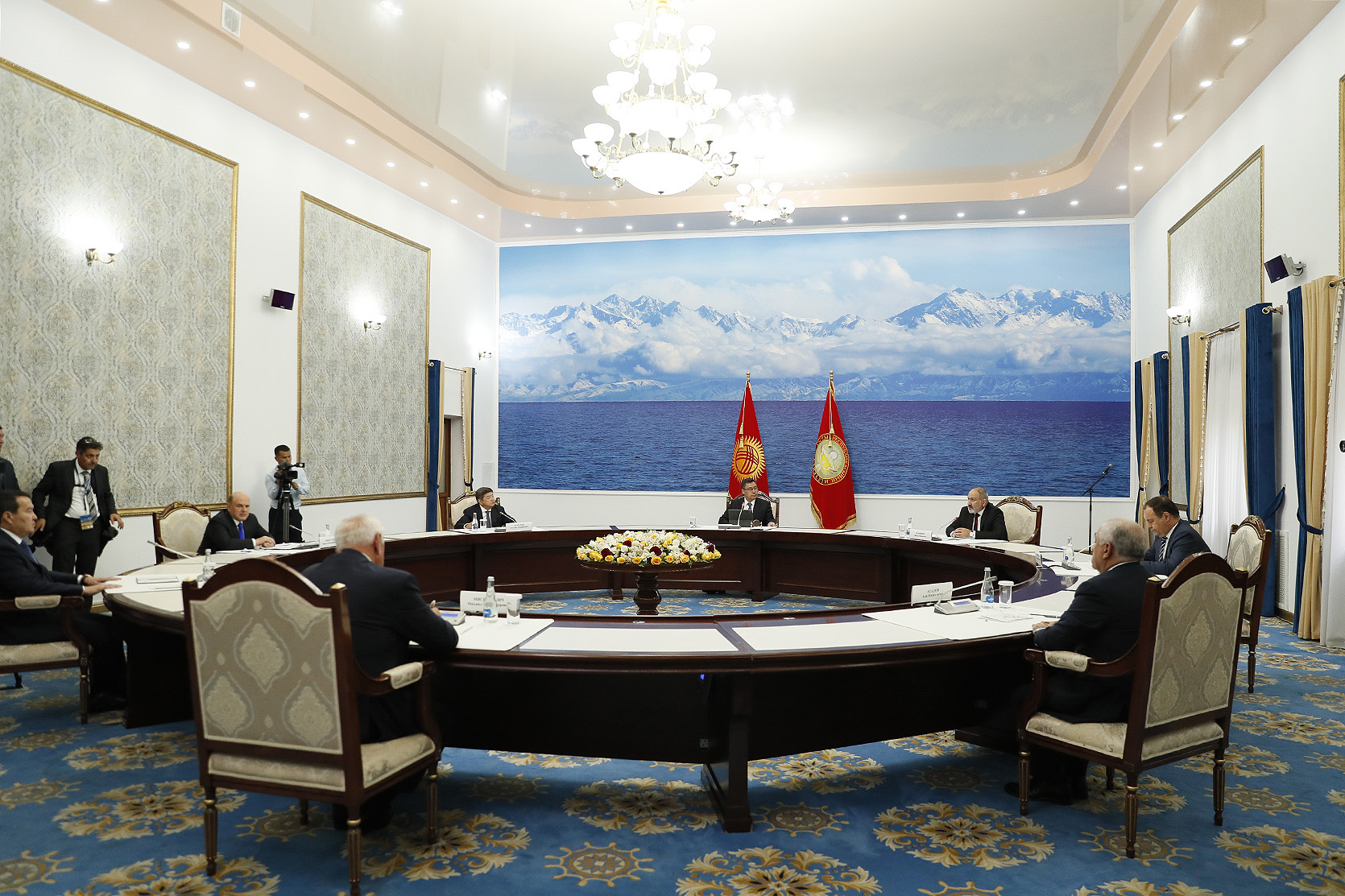 Վարչապետ Փաշինյանը շնորհակալություն է հայտնել Ղրղզստանի նախագահին ջերմ ընդունելության համար և նշել. «Սպասվում է կարևոր նիստ, ունենք մեծ և հագեցած օրակարգ` կարևոր հարցերի շուրջ: Հույս ունեմ, որ մեզ կհաջողվի հանգել կոնկրետ որոշումների և հնարավորինս քիչ աշխատանք թողնել Եվրասիական բարձրագույն խորհրդի նիստին: