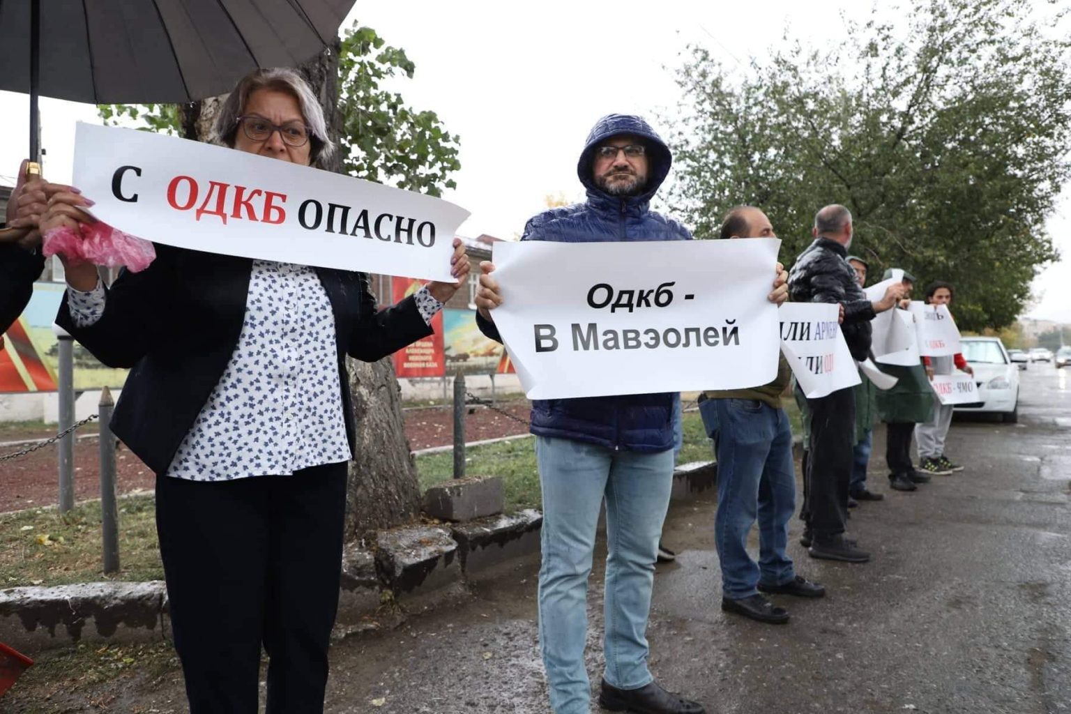 factor.am: Այսօր Գյումրու 102-րդ ռազմաբազայի դիմաց տեղի ունեցավ լուռ բողոքի ակցիա՝ ՀԱՊԿ-ից դուրս գալու պահանջով։ Ակցիան ուղեկցվեց «ՀԱՊԿ-ում վտանգավոր է», «Կամ Հայաստան, կամ ՀԱՊԿ» և նմանատիպ կարգախոսներով։