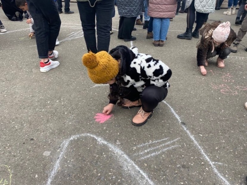 Ակցիայի ավարտին մայրերի հետ Վերածննդի հրապարակ եկած փոքրիկները գունավոր կավիճներով խորհրդանշական պատկերներ նկարեցին։
