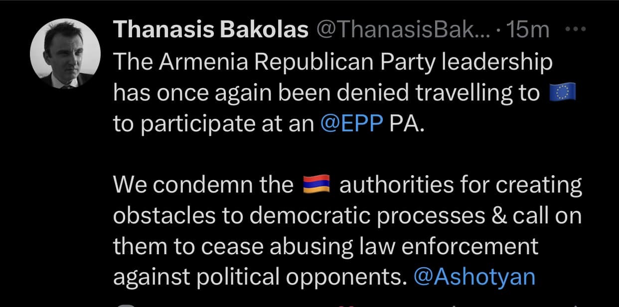 Քիչ առաջ ԵԺԿ Գլխավոր քարտուղար Թանասիս Բակոլասը իր պաշտոնական էջում խիստ քննադատել է Հայաստանի իշխանությունների այս արարքը: