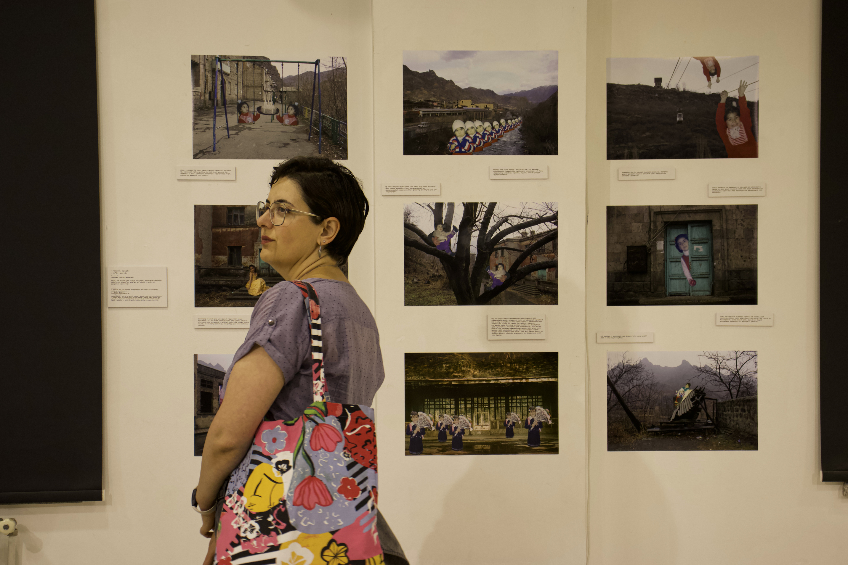 Ժապավենային լուսանկարներին կից տեքստում կարդում ենք․ «Քաղաքը չի խոսում՝ օգնելով սեփական լռությանս հարմարվել։ Պարուրված Աշտարակի ձորից լսվող երաժշտությամբ ու բարձրացող ծխով՝ խոսքը խեղդվում է աղմուկի մեջ։ Քաղաքը համր է։ Բայց ես, մի տեսակ, հասկանում եմ իր լռությունը։ Ժամանակը ո՞ր ուղղությամբ է հոսում։ Ամեն քայլ դեպի իրականություն ավելի է հեռացնում ներկայից։ Անցյալն ուսումնասիրելու, ճանաչելու, շոշափելու անհասկանալի մղում՝ Ֆիզիկական հետազոտությունների ինստիտուտ»։