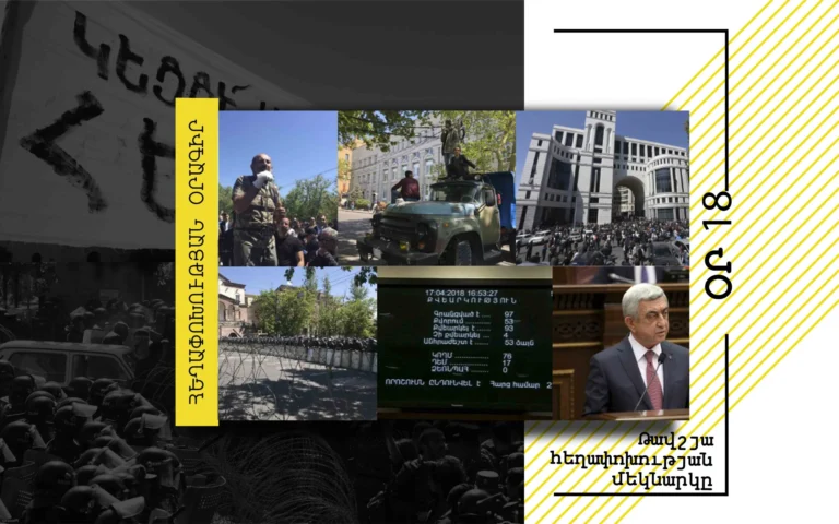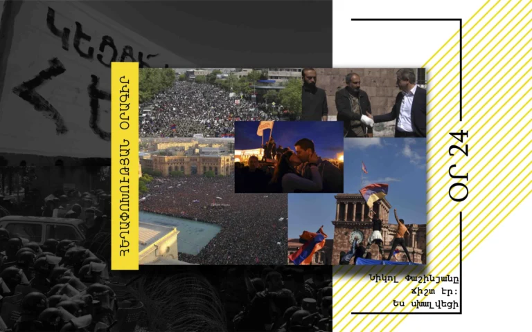 «Հեղափոխության օրագիր» շարքով կներկայացնենք 2018 թ-ի ապրիլ-մայիսյան իրադարձությունների ընթացքը, քաղաքացիների, հանրության տրանսֆորմացիան «հուսահատության վիճակից» «հեղափոխական ընթացքի»՝ մասնակից ֆորմալ և ոչ ֆորմալ խմբերի ներկայացուցիչների հայացքով։