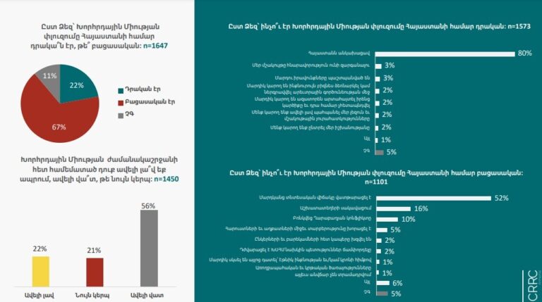 ՀՀ քաղաքացիների 67%-ը կարծում է, որ Խորհրդային Միության փլուզումը Հայաստանի համար բացասական էր․ սոցհարցում